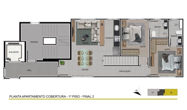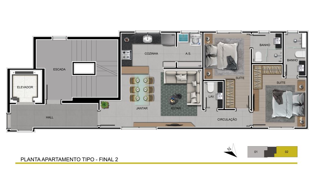 - Constituído por 10 unidades de 2 suítes mais lavabo