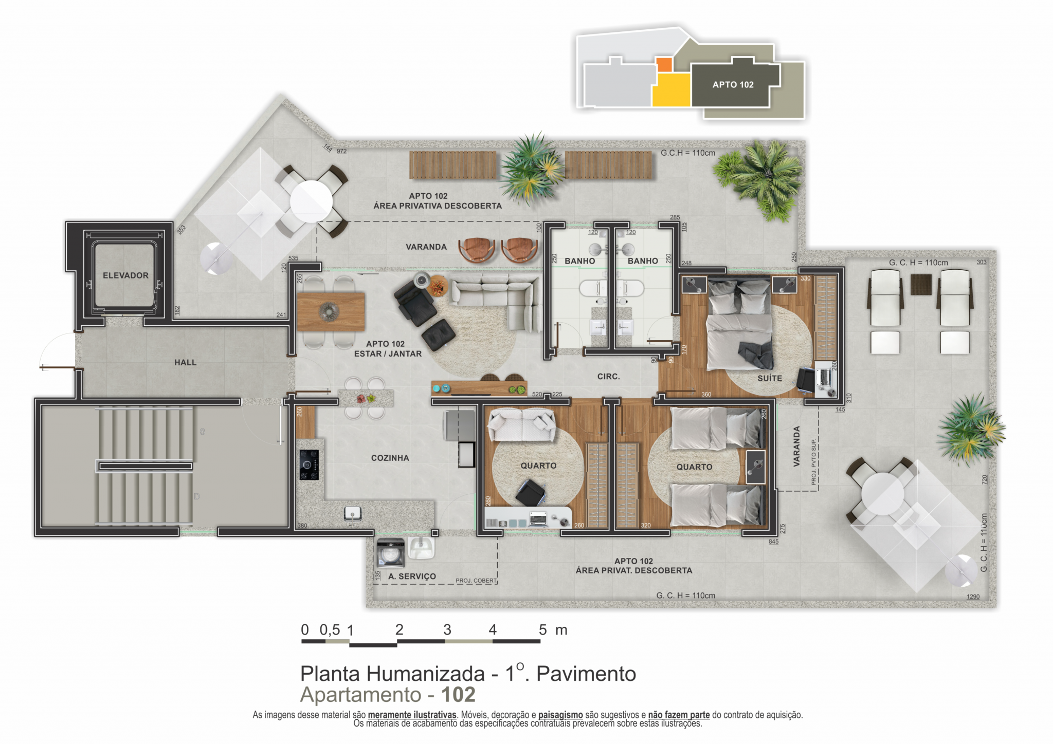 Adquirindo um apartamento, você terá a sua volta uma exuberante paisagem natural, além de apreciar, do aconchego de seu lar, uma vista admirável para o horizonte!